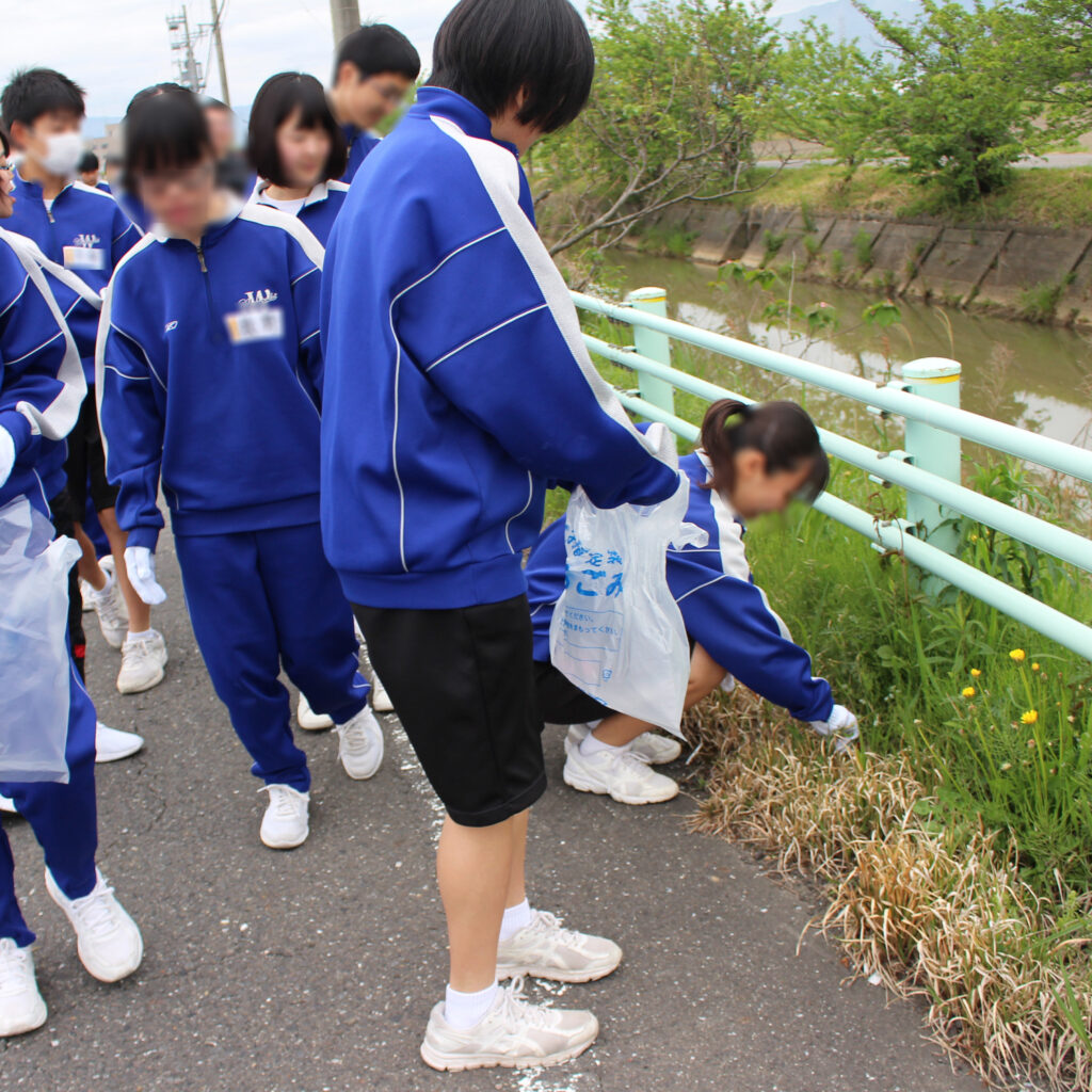 輪之内町はどんなまち(4)のどかな田園風景を輪之内中学校の生徒の大榑川清掃ボランティアの様子。どこにでもいそうな普通の中学生ですが、実はこの地域ならではのユニークな特徴が・・❣️
